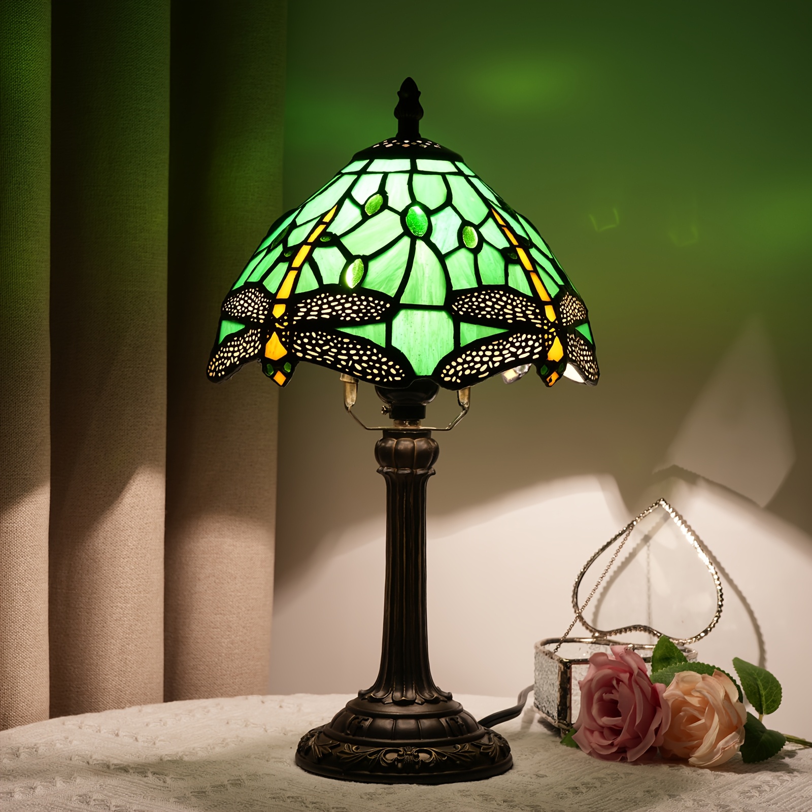 [1 Vintage Mosaic Glass Lamp] Vintage Handmade Mosaic Glass 1 Stained Glass Table Lamp | Office Home Living Room, Dining Room and Bedroom Decoration Lamps