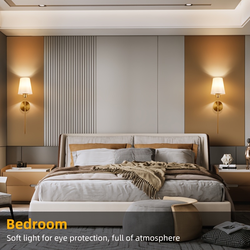 2-Pack Rechargeable Wall Lamp with Remote Control, Black/Golden Battery Powered Wall Light with Cordless White Fabric Shade, Non-Hardwired for Living Room, Bedroom, Hallway Decor (Color Adjustable), Wall Lights for Living Room, Bedroom Lighting, Modern Lighting, Durable Lighting