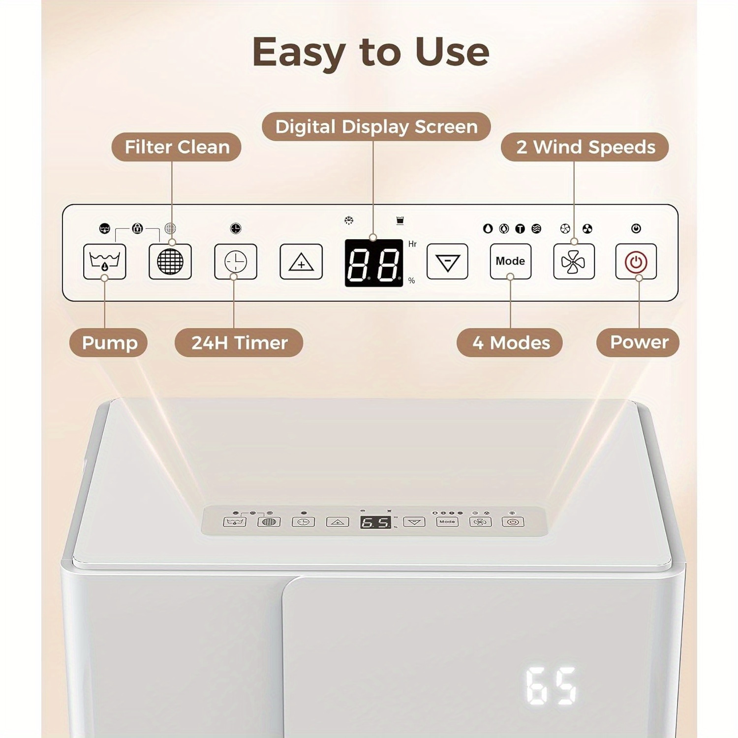 Dehumidifier With Auto Defrost, 50/80 Pints/ Day, 3 Color LED Lights & LED Display, 24H Timer, 3 Modes, Drain Hose Included, For Home, Basement, Large Room, 6.5L(1.7 Gal), 4.8L(1.2 Gal) Water Tank