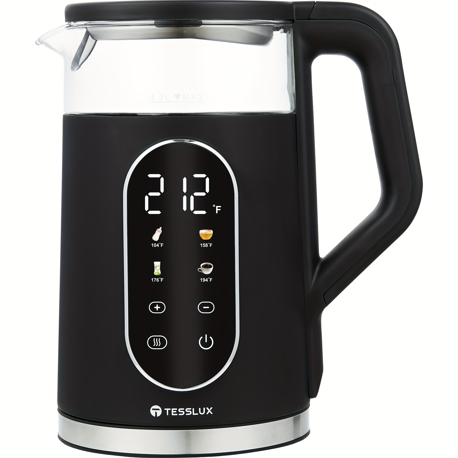 Electric Kettle, 1.7L/ 1500W Water Boiler Heater With Temperature Control, BPA-Free, 4 Preset Heating Programs, Glass Boiling Tea Maker, Black, Camping Must Haves, Kitchen Accessories