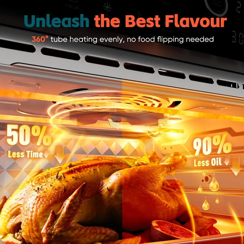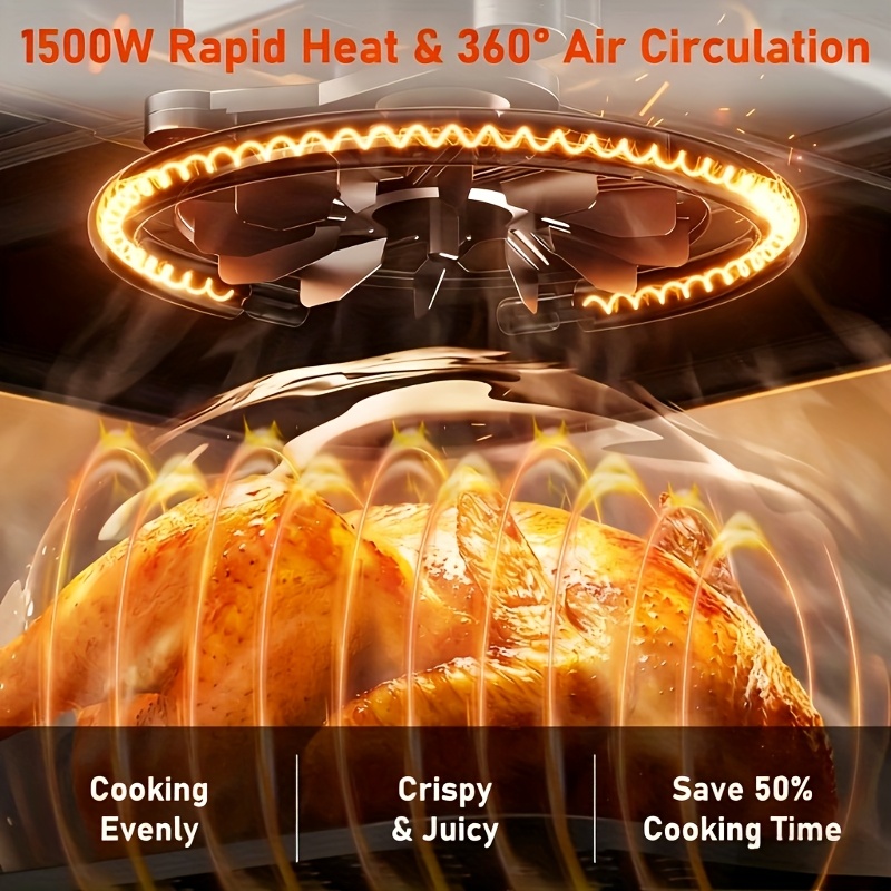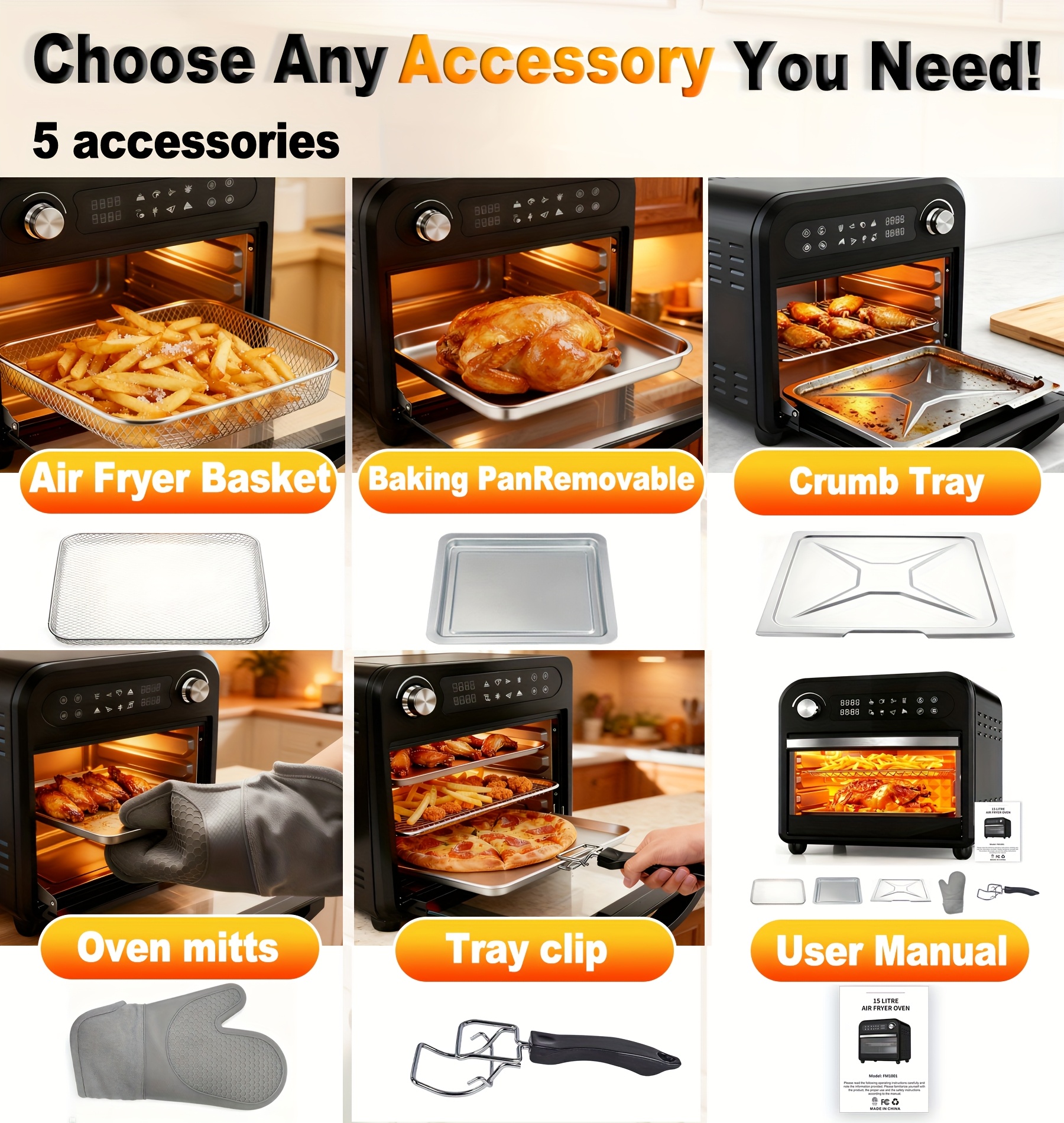 16QT Large Capacity Digital Air Fryer Oven Toaster Combo with 360° Hot Air Circulation, 1500W Fast Preheating & Cooking, Digital Display & Precise Temperature Control, Transparent Door with Window, Healthy Low-Oil Cooking Intelligent Chip Technology