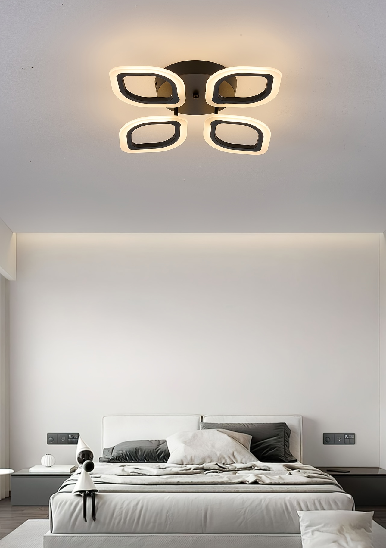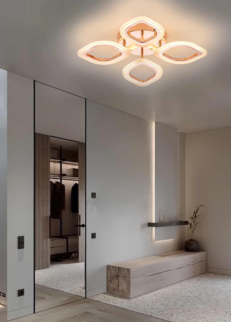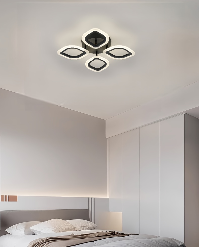 [Minimalist Creative Design] 4-Head Modern Elegant LED Ceiling Light | Three-Color Changing Aluminum Acrylic Electroplated Craft | Minimalist Creative Design High-Quality Easy Installation Black White Rose Golden for Living Room Bedroom Study Hallway Bar Dining Area Entryway Indoor Ceiling Lamp Wall Light Ambient Lighting Suitable for Up and Down Switch Control Color Not Included, Contemporary Lighting, Sleek Metallic Finish, Durable Lighting Fixture, Home Decor, Stylish