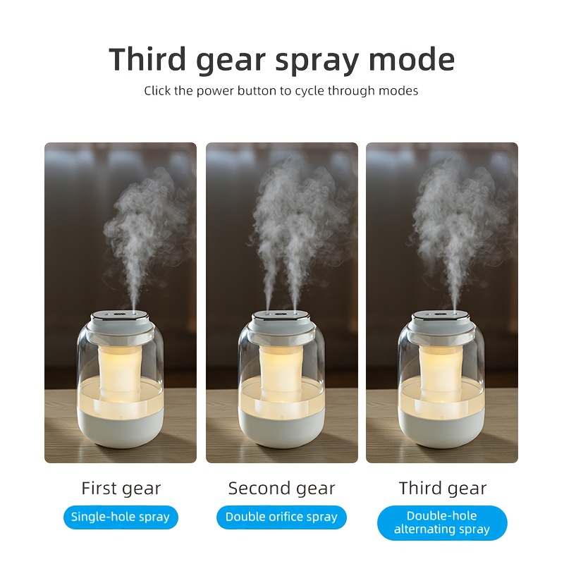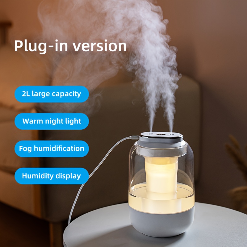 Multi-Functional Humidifier! Humidity Display shows real-time air humidity, visible water tank. 3 Mist Levels adjustable, dual mist nozzles + continuous fine mist quickly moisten space. Warm night light, 8-hour auto-shutoff for safety, Ultra-quiet.