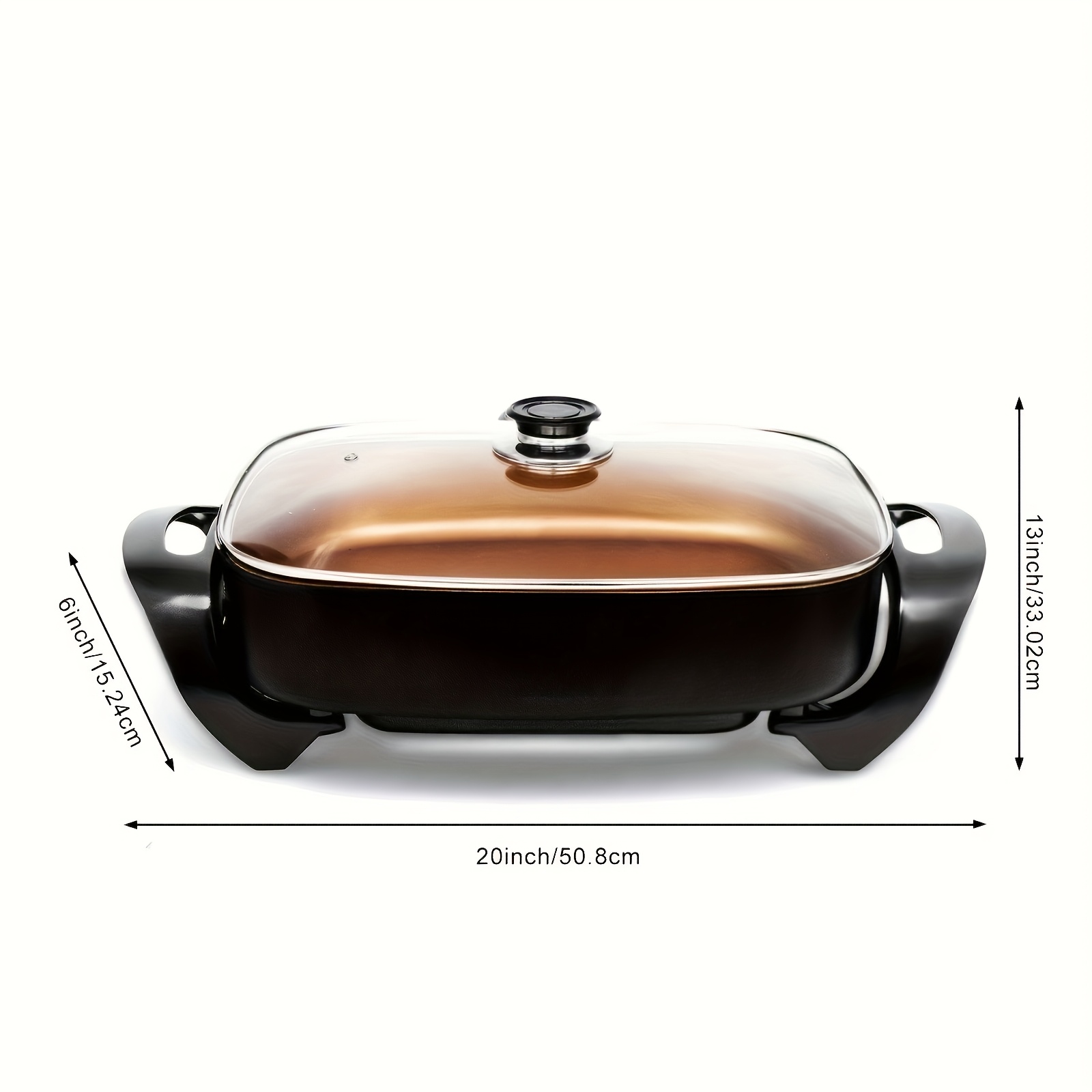Plus Long Professional Non-stick Copper Electric Frying Pan with Extended Deep Dish, Tempered Glass Breathable Lid, Upgraded Thermostat Control, 16"x 12"x 3.15" -8 Quart, Home Cooking, Nonstick Cookware, Sleek Design, Modern Cookware