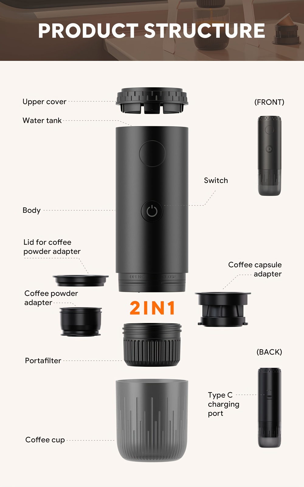 Portable Capsule Coffee Machine, Fully Automatic Espresso Capsule Coffee Machine, Electric Extraction Espresso Machine, Suitable For Portable Travel, Outdoor Car And Office. Portable Coffee Machine Capsule, Coffee Powder Dual-purpose Machine.