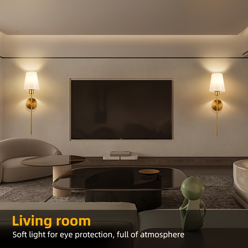 2-Pack Rechargeable Wall Lamp with Remote Control, Black/Golden Battery Powered Wall Light with Cordless White Fabric Shade, Non-Hardwired for Living Room, Bedroom, Hallway Decor (Color Adjustable), Wall Lights for Living Room, Bedroom Lighting, Modern Lighting, Durable Lighting