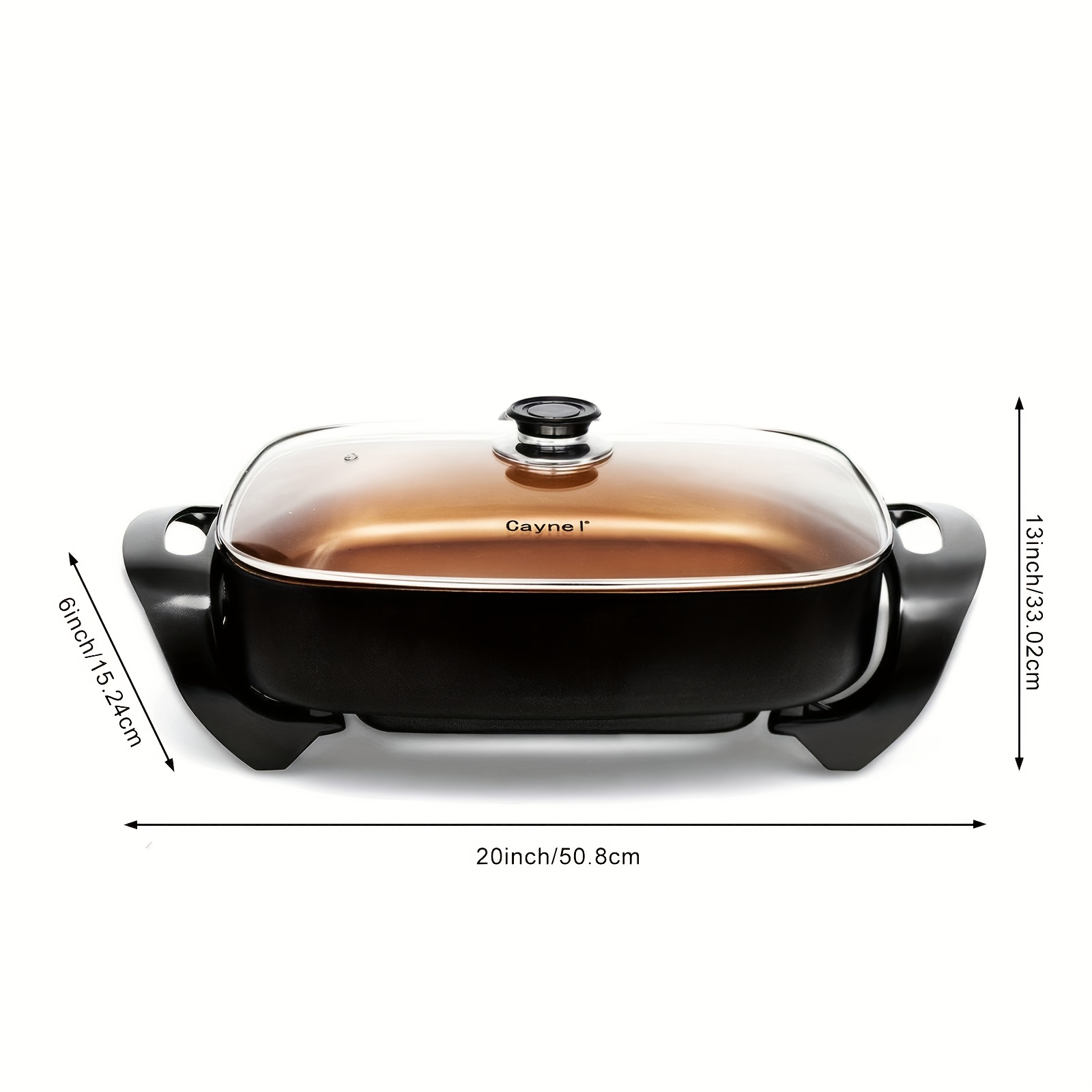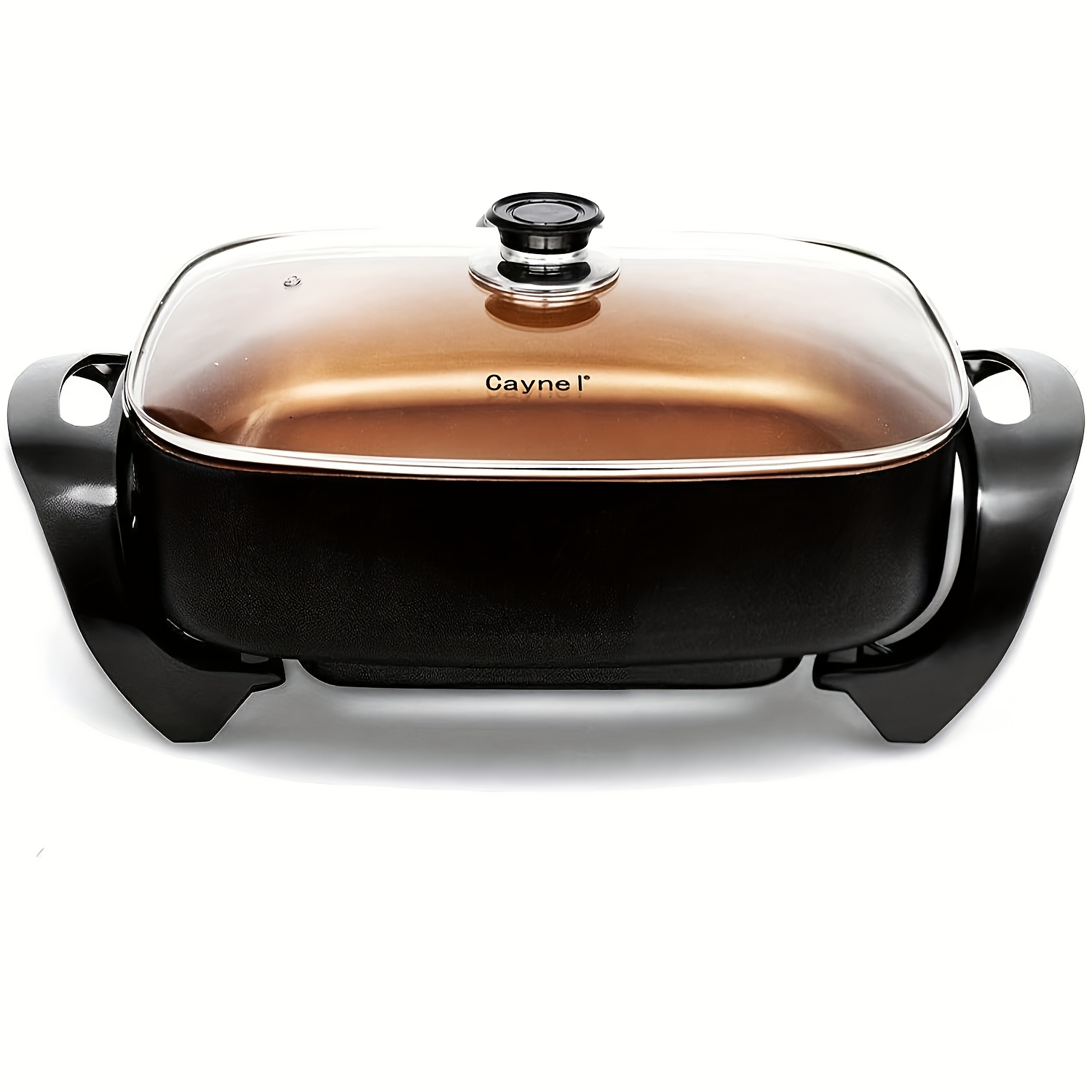 Caynel 16x12 Inch Professional Non-Stick Copper Electric Frying Pan with Tempered Glass Vented Lid & Upgraded Thermostat - 8 Quart Large Deep Dish Cookware, Even Heat Distribution, Cool-Touch Handle, 120V Plug-in Design for Searing, Sautéing, Frying - Ideal for Home & Commercial Kitchens, Searing Cookware, Electric Skillet With Lid, Electric Skillet Nonstick, Electric Frying Pan With Lid, Electric Pan For Cooking, Electric Cooking Appliance, Free, Electric Baking Pan, Electric Kitchen