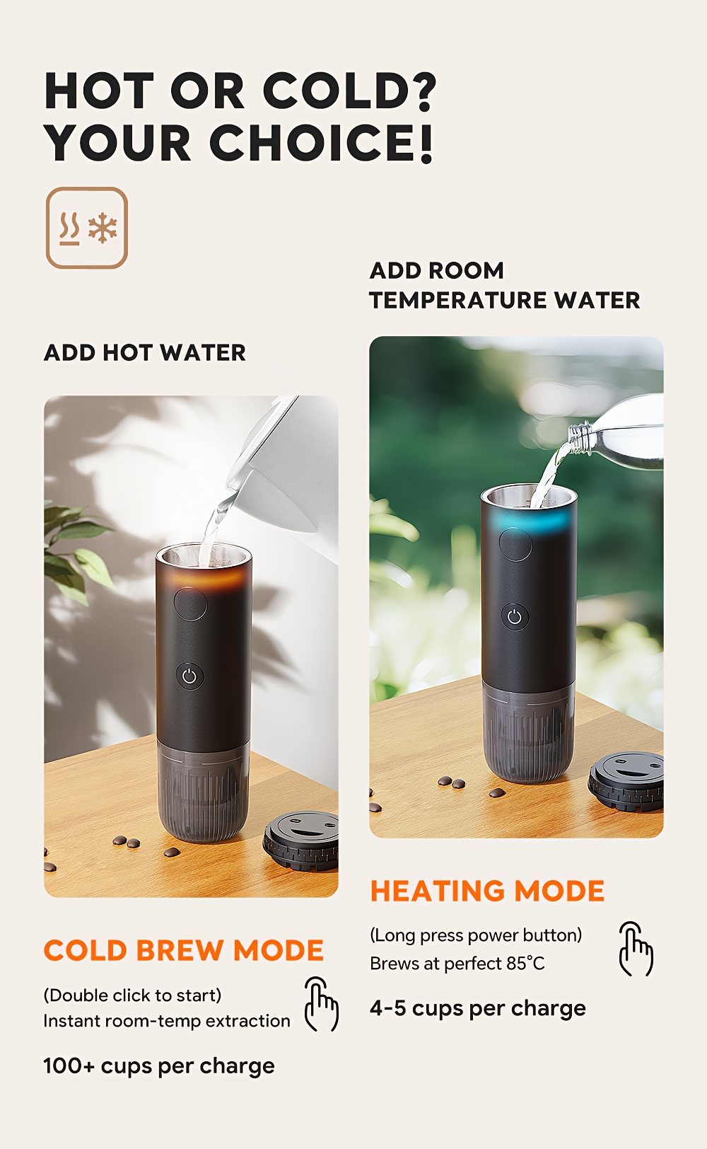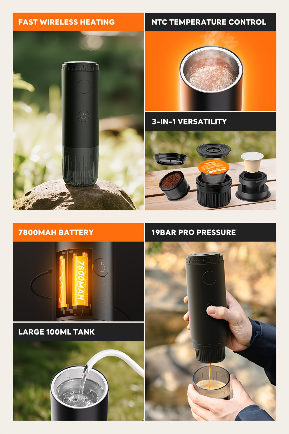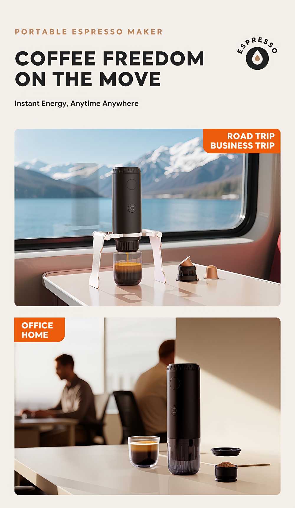 Portable Capsule Coffee Machine, Fully Automatic Espresso Capsule Coffee Machine, Electric Extraction Espresso Machine, Suitable For Portable Travel, Outdoor Car And Office. Portable Coffee Machine Capsule, Coffee Powder Dual-purpose Machine.