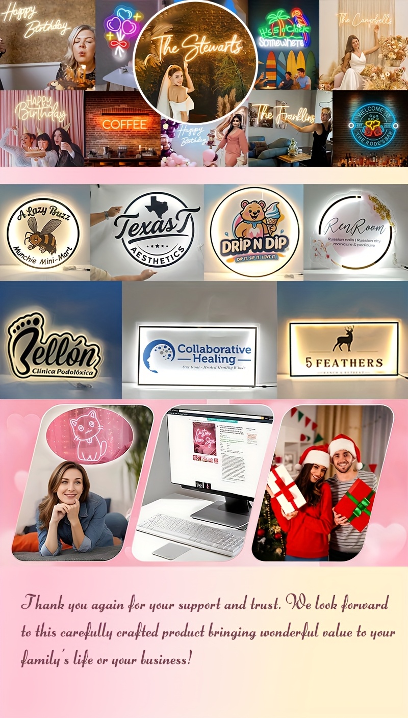 Custom Neon Sign, Personalized Text/Logo/Name/Number/Word, USB Dimmable RGB-Free Single-Color, Easy Installation Vinyl Wall Light