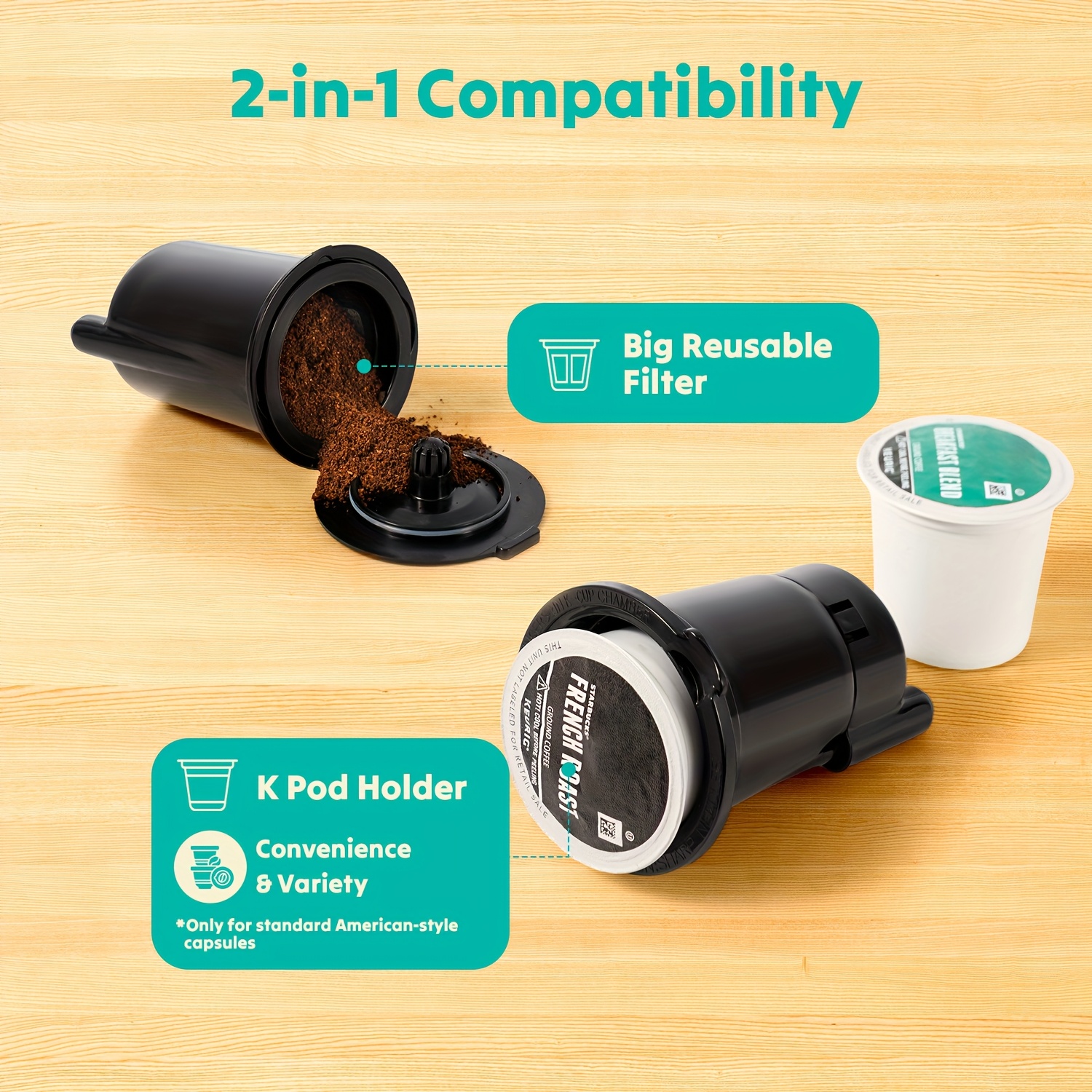 Hot & Iced Coffee Maker with Bold Setting, Single Serve Coffee Maker for K Cup and Grounds, 6-14 Oz Brew Sizes, 50 Oz Removable Water Tank, One Cup Coffee Machine with Reusable Filter, Black