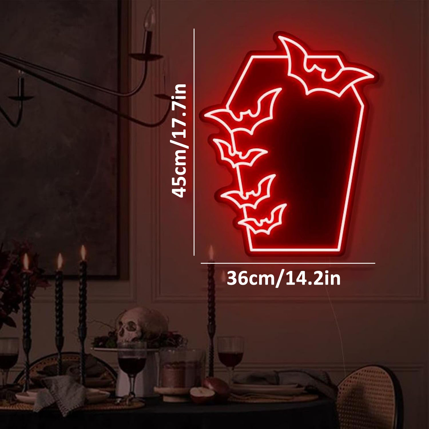 1pc Gothic Coffin Bat Neon Mirror Sign, LED Wall Mounted Makeup Mirror with Multicolor Glow, USB Powered, Switch Control, Plastic Material, Ideal for Bedroom, Makeup Room, Gift - Purple, White, Red
