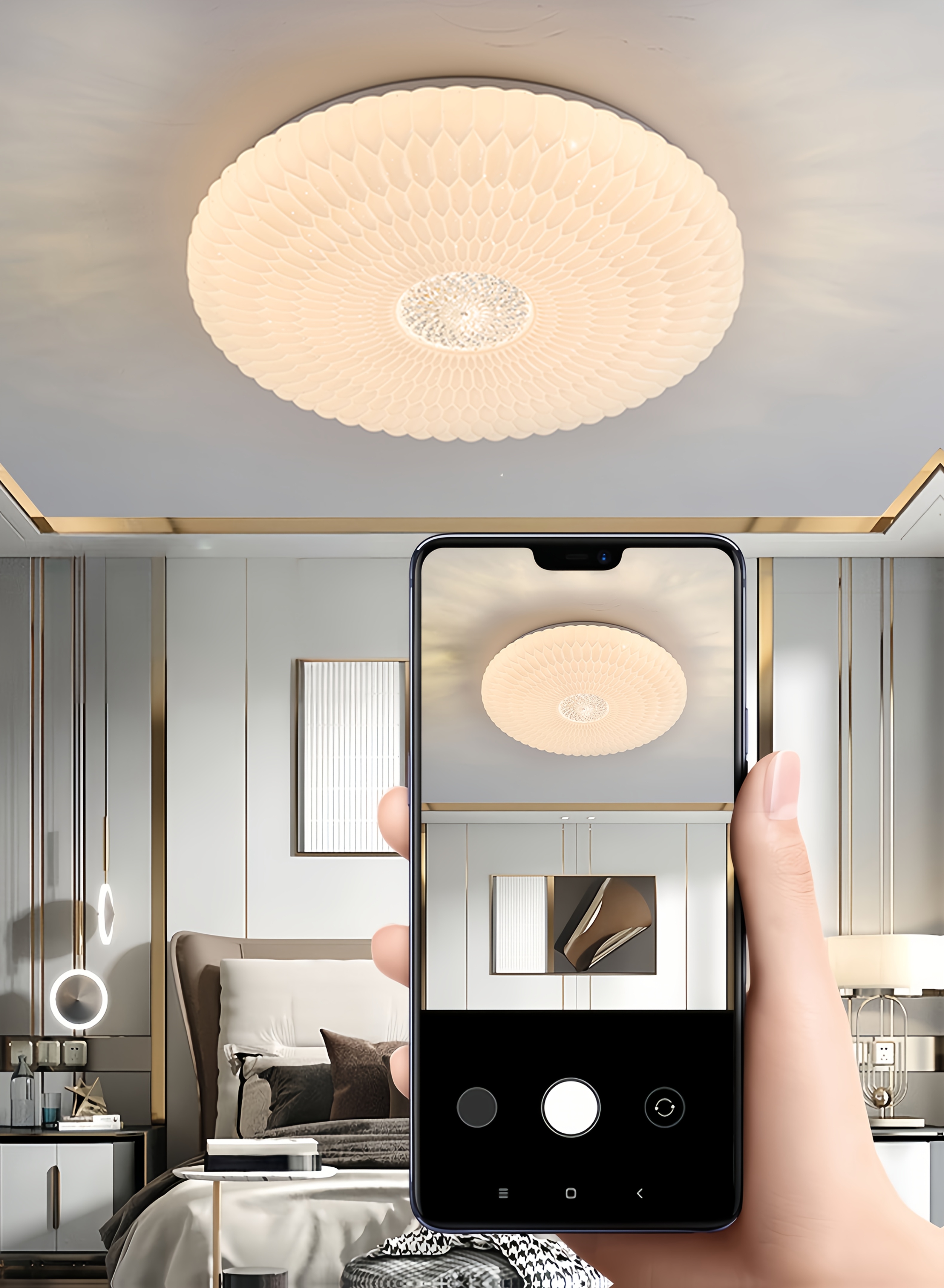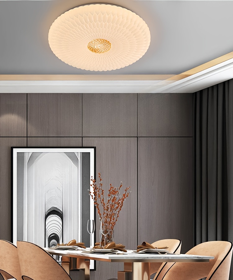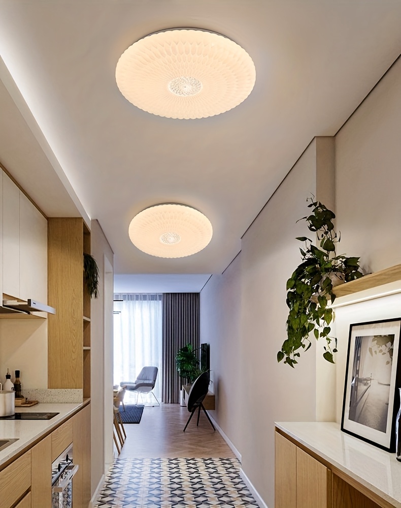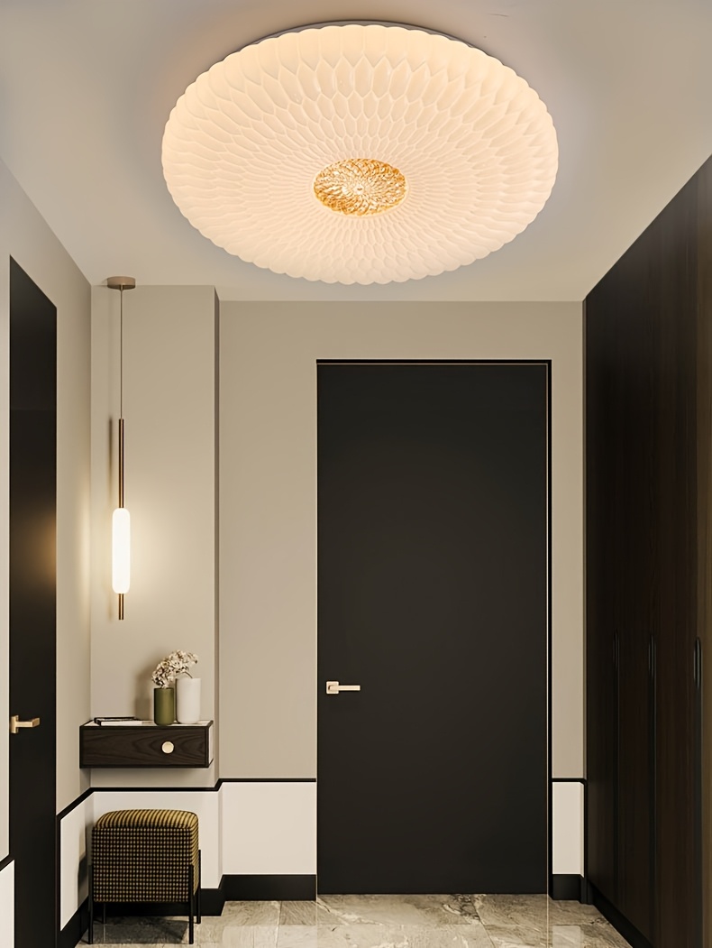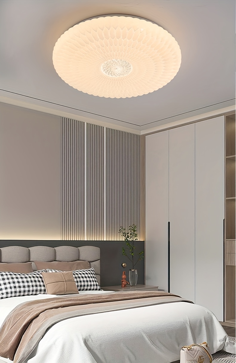 Modern Elegant Luxurious Feather-Shaped Round Acrylic Diamond Pattern Tri-Color Changing Ceiling Light with Easy Installation for Living Room, Bedroom, Study, Hallway, Bar - Product Does Not Include Switch Control